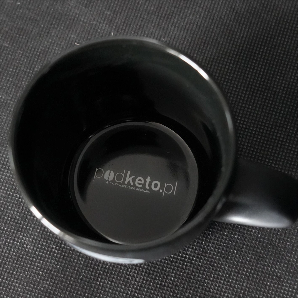 - Czarny kubek ceramiczny klasy premium z połyskowym, czarnym wnętrzem i z motywacyjno-humorystycznym hasłem. Wnętrze zaś zdobi hashtag #tylkoketoza