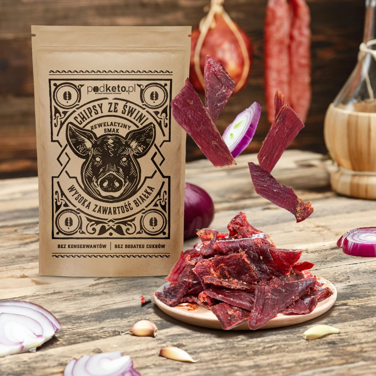 Odkryj wyjątkowy smak naszych chipsów wieprzowych - idealnej przekąski dla osób na diecie ketogenicznej. Te kruche plastry suszonego schabu to zdrowa alternatywa dla tradycyjnych przekąsek.