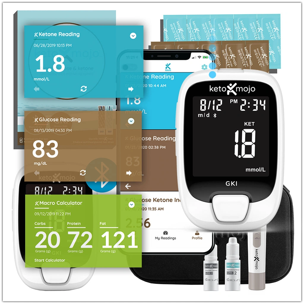 Ketomojo oferuje wiele nowoczesnych rozwiązań dla ketogeników - monitoruje stan i głębokość Twojej ketozy oraz poziomu cukru we krwi, a za pomocą integracji ze specjalną aplikacją dedykowaną obliczy także Twój indeks GKI, oraz spersonalizuje na tej podstawie optymalne dla Ciebie makroskładniki w diecie.