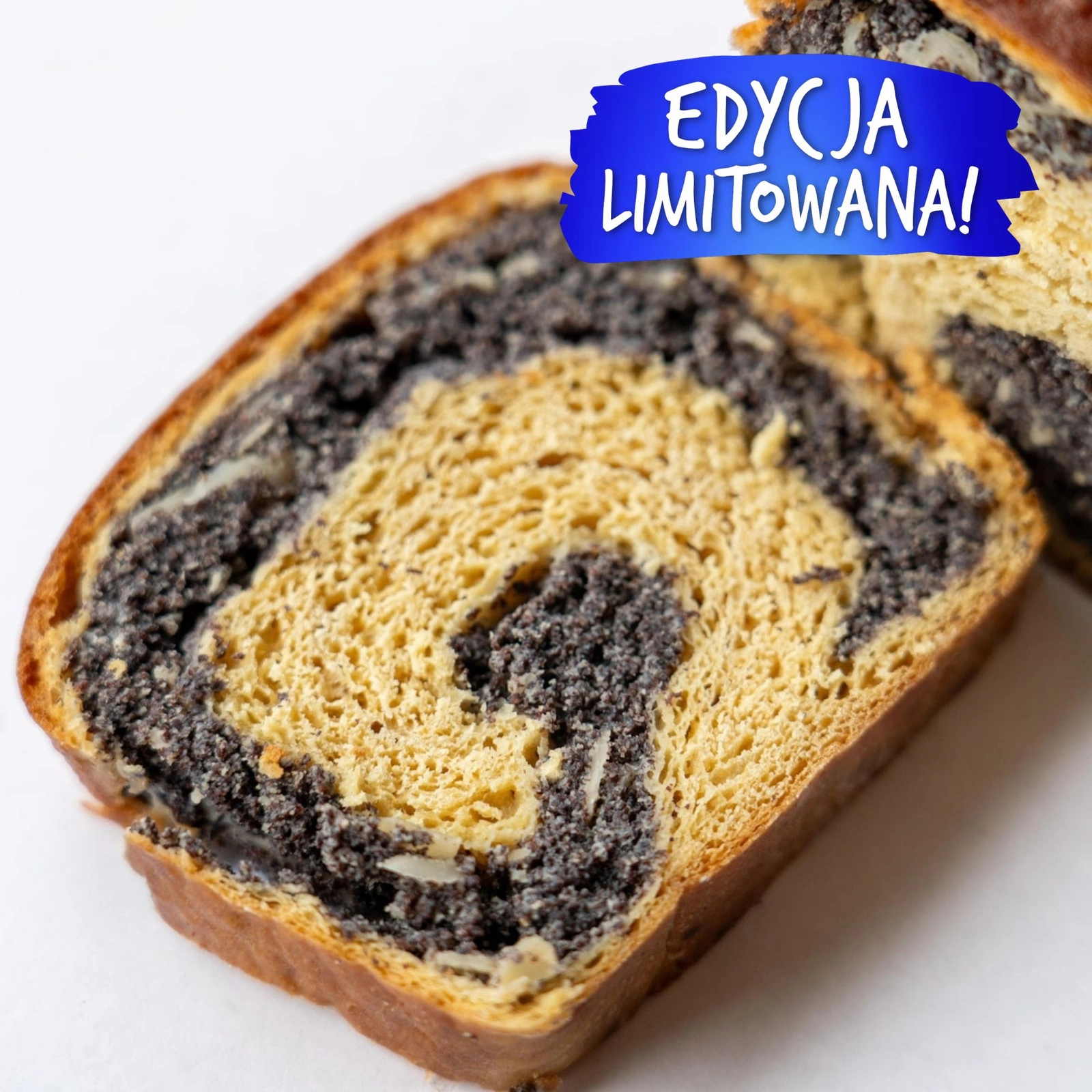 Składniki: Nadzienie makowe (mleko 2%, erytrytol, mak, migdały), mąka łubinowa, jaja, białko pszenne, erytrytol, mleko 2%, woda, błonnik bambusowy, mąka migdałowa, drożdże piekarskie, masło 82%, guma ksantanowa, sól.