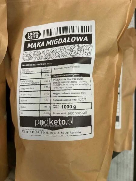 Składniki: Mąka migdałowa z blanszowanych migdałów.