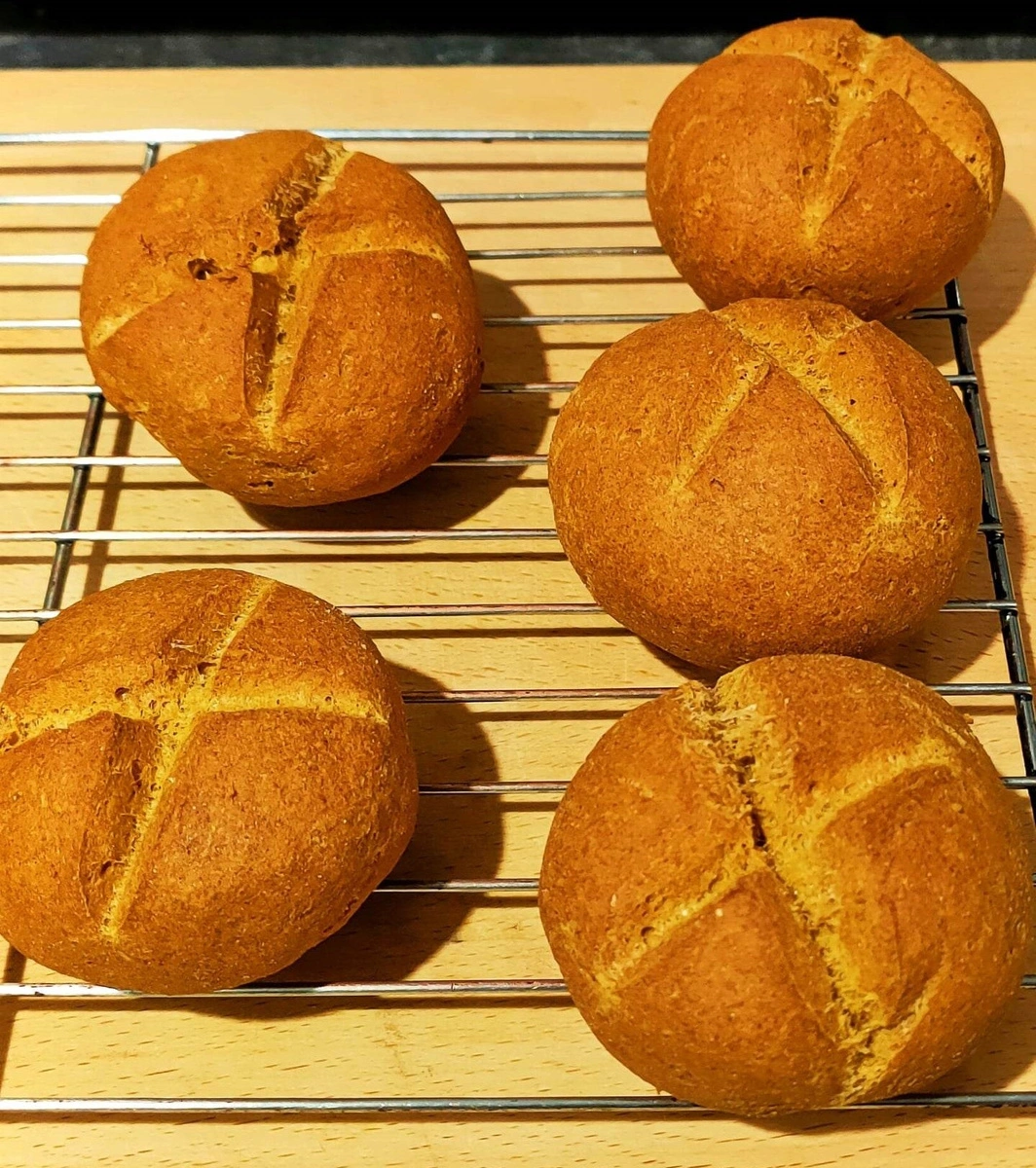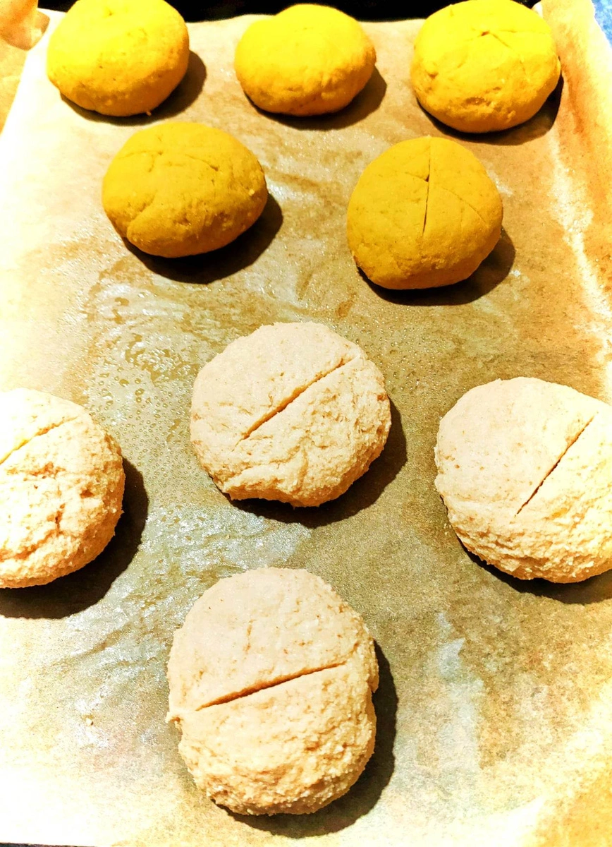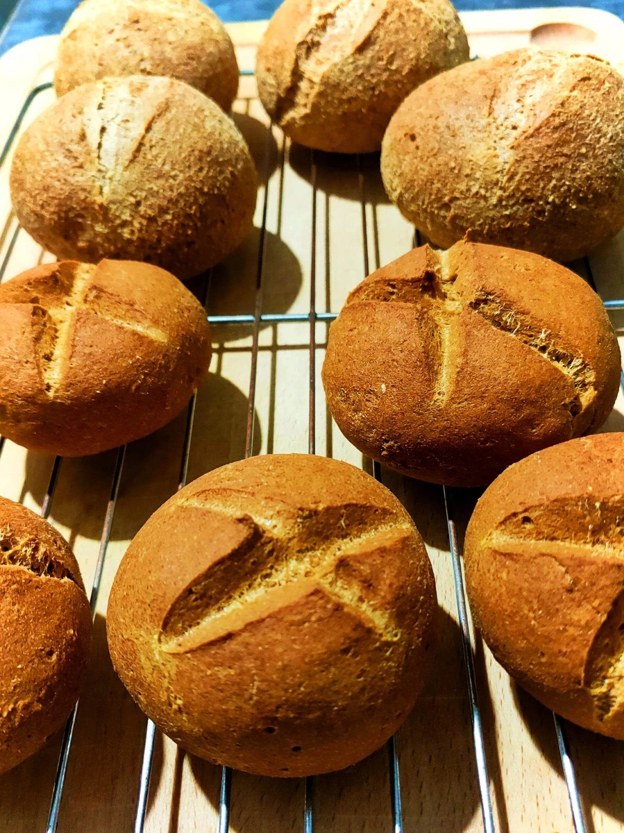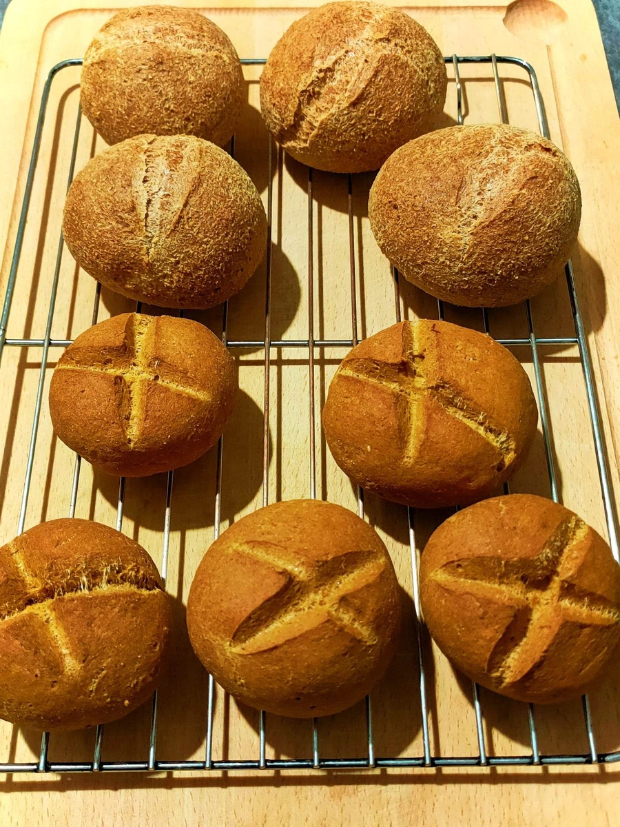 - piekarnik nagrzej do 200 stopni i piecz przez 45 min dla bułeczek i 60 min. dla chleba.