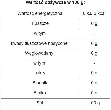 | Wartość energetyczna | 0 kj / 0 kcal |